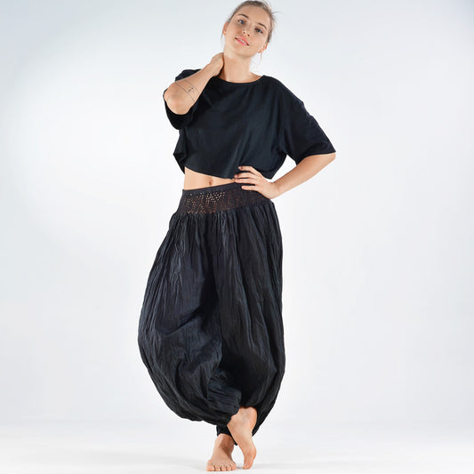 These handmade cotton crinkle pants with a knitted waistband are breezy and c...