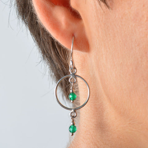 This lovely pair of earrings is handcrafted in Auroville. The stones are care...