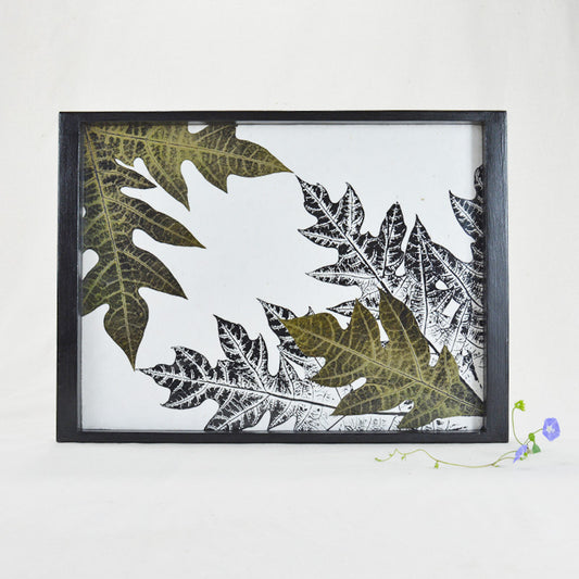 Carica papaya - real papaya leaf (inked to enhance its beautiful structure) i...