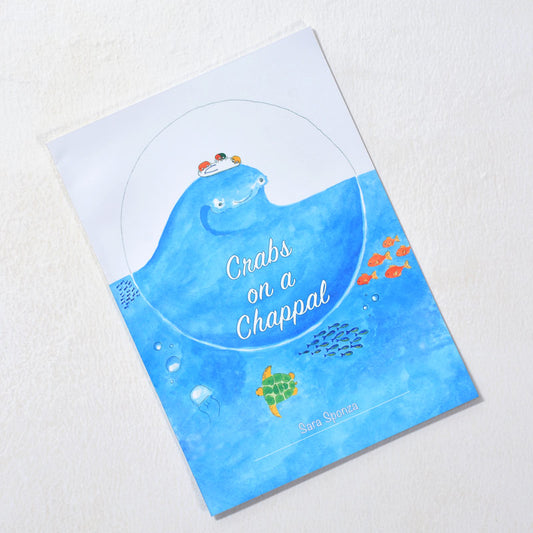 Three adventurous sand crabs stand together on a chappal that they found floa...