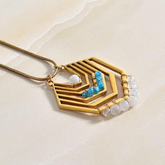 This elegant necklace is hand crafted by the Auroville Unit Aurosunshine. The...