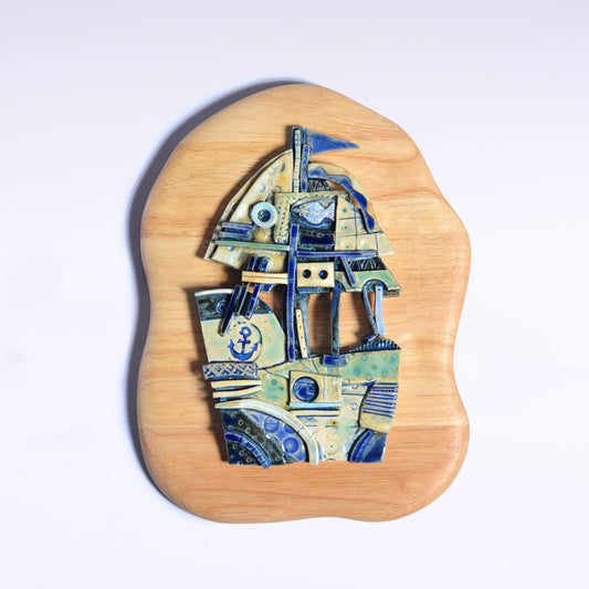 This may be a wall platter or propped up on a base. A unique art piece from...