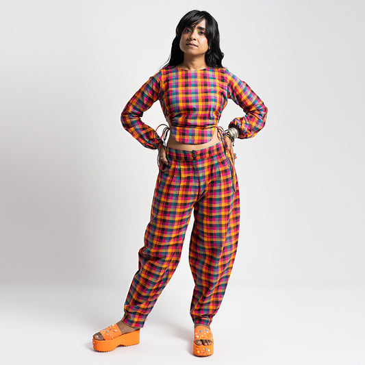 These handmade cotton crinkle pants with a knitted waistband are breezy and c...