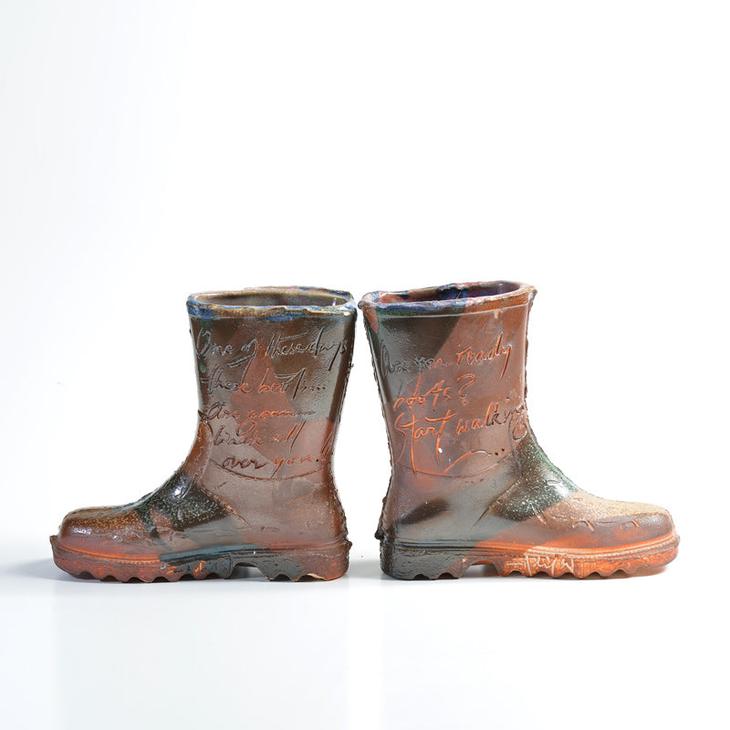 These boots are made for walking" go the lyrics! Soda-fired gumboots.