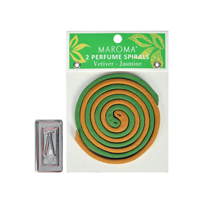 Spirals give the desired incense burning effect in a spiral shape and burn without flame for up to 6-7 hours. These unique and practical spirals need no special holders to use other than a metal stand. They are portable and can be placed outdoors or on large open patios to create instantly an atmosphere of well-being and celebration with their varied scents of nature. The fragrance is blended with natural essential oils. A complement to our normal household practices of lighting candles or incense. The two coils are intertwined and should be separated carefully to avoid breaking.