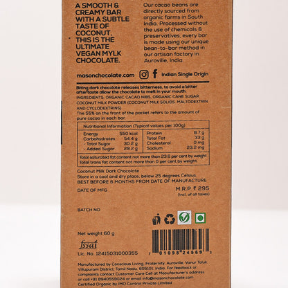 55% Coconut Milk Dark Vegan Chocolate Bar - (Set of 3)