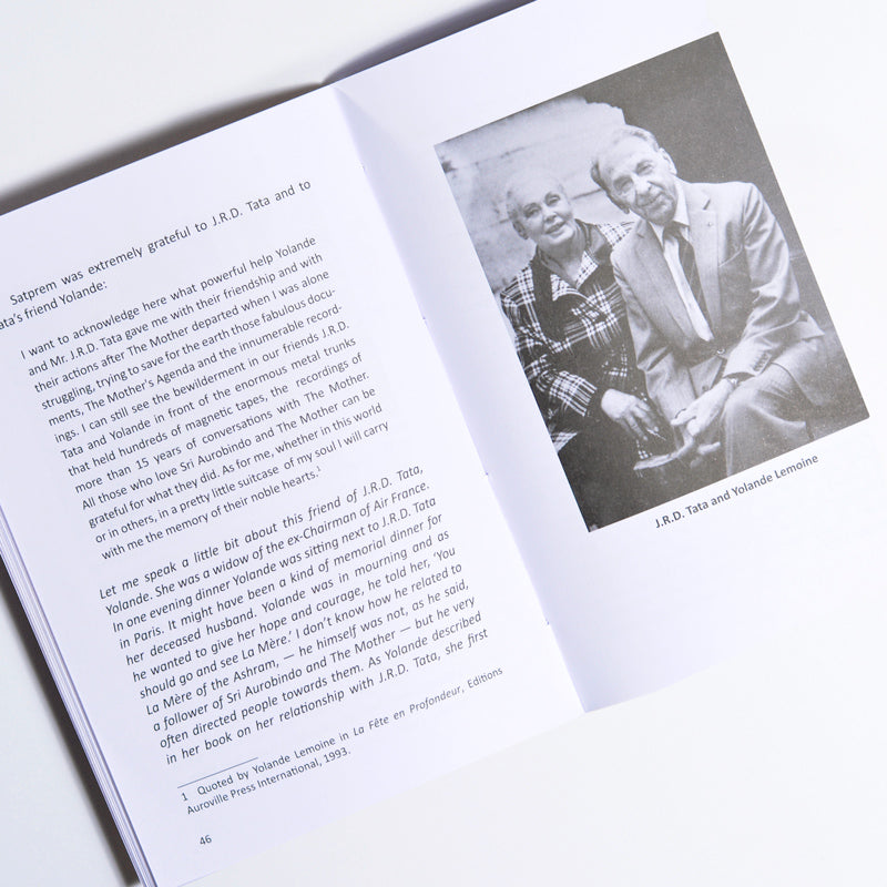 This book is the story of a unique relationship between the legendary industrialist J.R.D. Tata and a young man, Frederick, who had come from Germany in the sixties to be with the Mother of the Ashram of Pondicherry and who became one of the first people to join her extraordinary adventure, Auroville. But along with the story of that unique friendship, revealed to us through the correspondence between the two and through the meditative testimony of Frederick, one discovers also how much help the great man gave to that project, how much time and energy he devoted to that cause. A cause which obviously at the same time fascinated and puzzled him. The nobility, the kindness of J.R.D. Tata, his love for adventure and for youth shine through the pages of this book.