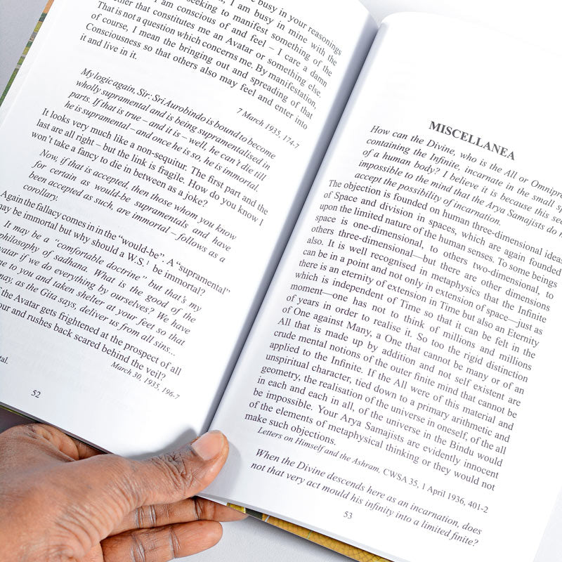 A selection of Sri Aurobindo’s texts highlighting the dual nature of the Avatar in its infinite complexity. The Avatar’s mission is not only to restore the dharma or ethical law and lead society one step forward but, in his divine humanness, the Avatar also points the way for mortals in their quest for perfection. This third edition includes a chapter on the sanatana dharma and texts by the Mother as well.