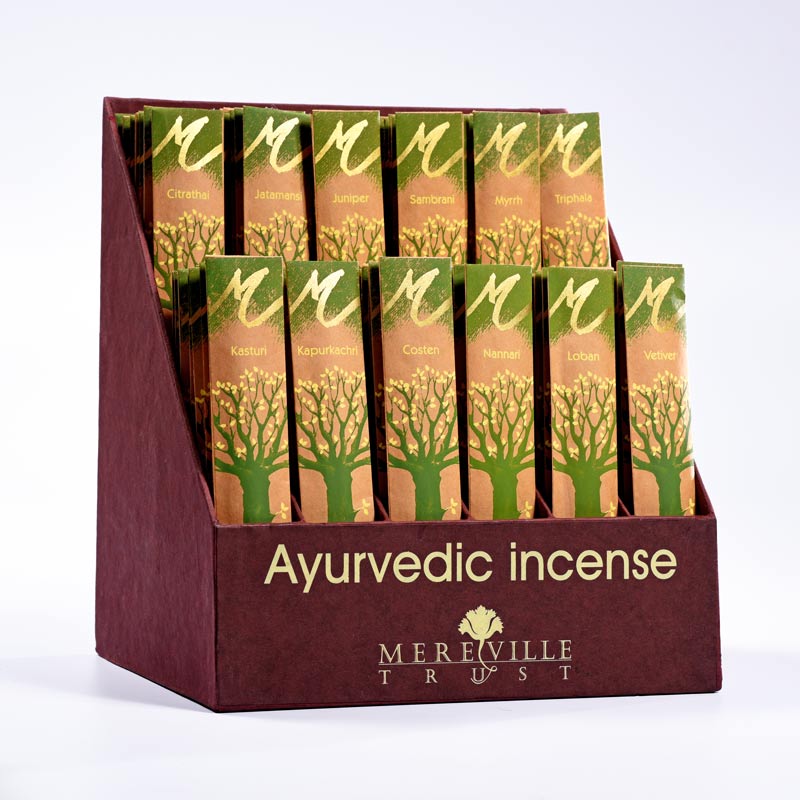 Ayurveda in Sanskrit means" Knowledge" or "Science of life". It is the most ancient holistic we know of that aims at re-establishing and maintaining a harmonious balance of mind, body, and spirit using Herbs, roots, resins, aromatic essence, and other natural elements. Burning a stick of this incense range is a simple way to diffuse aroma into the atmosphere to experience the pleasures of the fine fragrances.