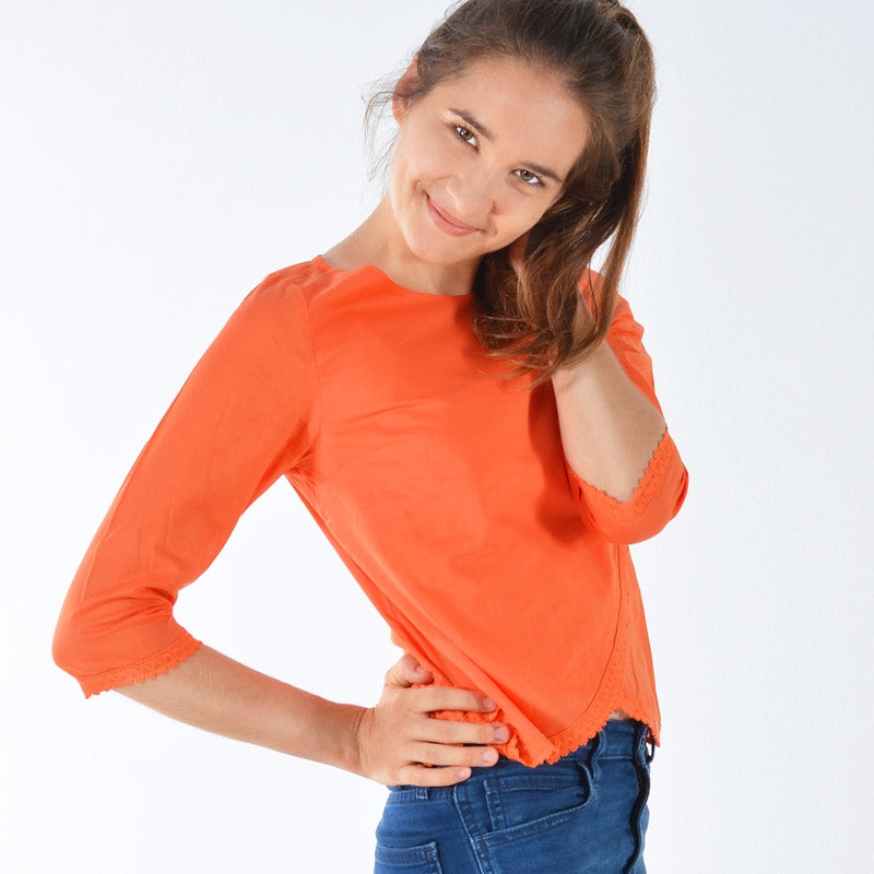 Azalea is a clean, modern, elegant top that can be styled with pants or skirts.