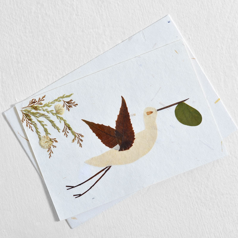 Materials used: The paper is hand made from recycled cotton, enhanced with natural fibres like straw, gunny or wool. Flowers are organically grown, then handpicked and pressed each day