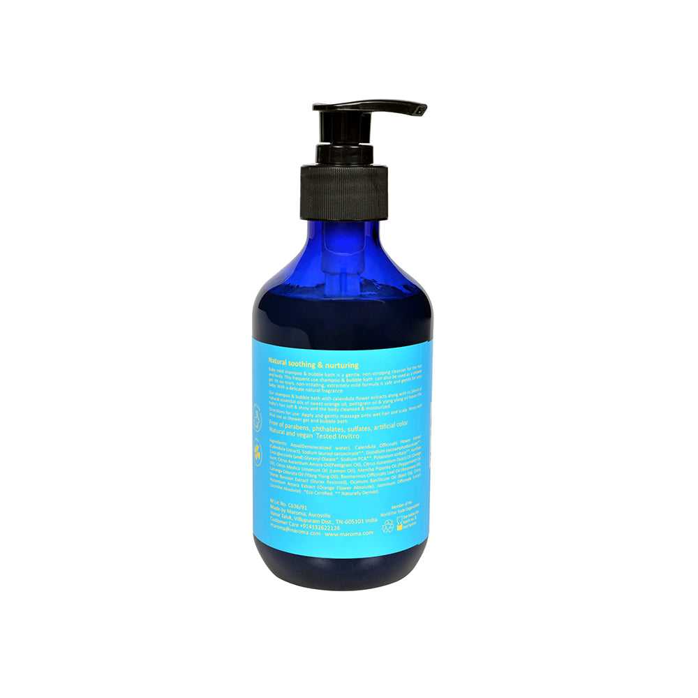 Our shampoo & bubble bath with calendula flower extracts and a blend of natural essential oils of sweet orange oil, petitgrain oil & ylang ylang oil leaves the baby’s hair soft & shiny and the body cleansed & moisturized.