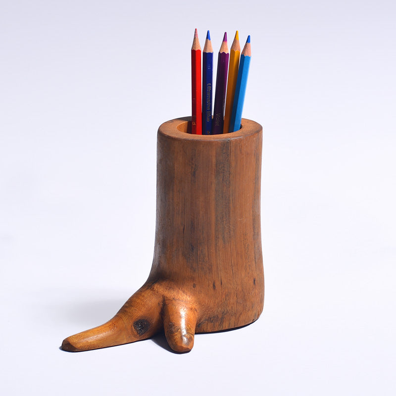 Keeping the natural shape of the material, this bamboo stand can be used for keeping cutlery in the kitchen, toothbrushes in the bathroom, or pens in the office. Sustainably sourced dry wood from Auroville's tropical dry evergreen forest.