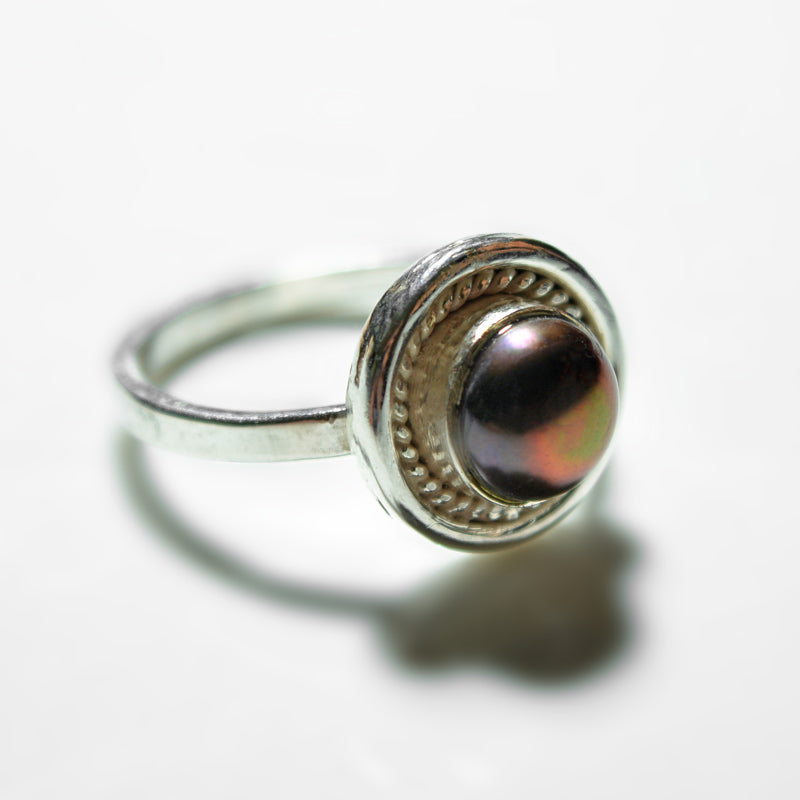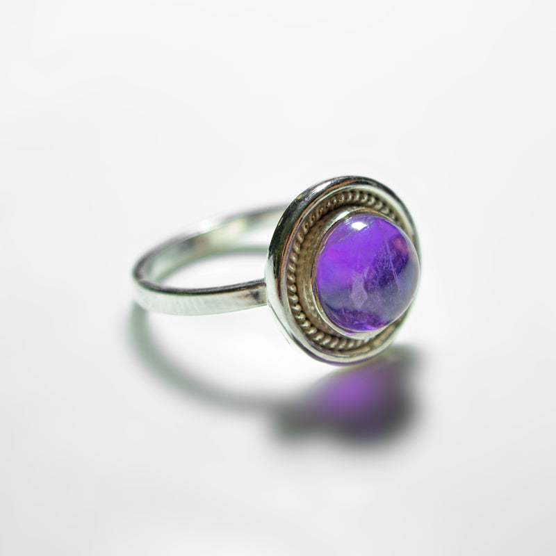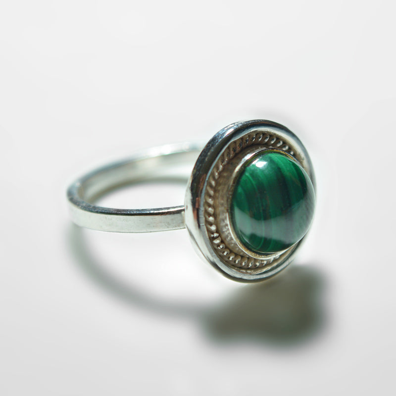 This beautiful ring is handcrafted by the Auroville Unit Aurosunshine. The silver (92.5 sterling) is melted in Auroville and the stones are carefully selected with an eye for detail, naturalness, and purity.