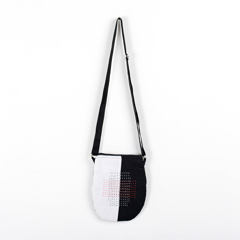 Made of black and white cotton fabric. Quilted and hand embroidered with beautiful intricate Kantha stitches. Our products are eco-friendly and convenient for day-to-day usage.