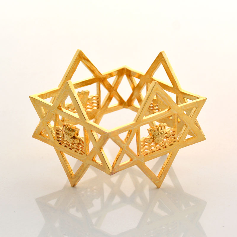 Sri Aurobindo's Symbol: The descending triangle represents Sat-Chit-Ananda. The ascending triangle represents the aspiring answer from matter under the form of life, light, and love.