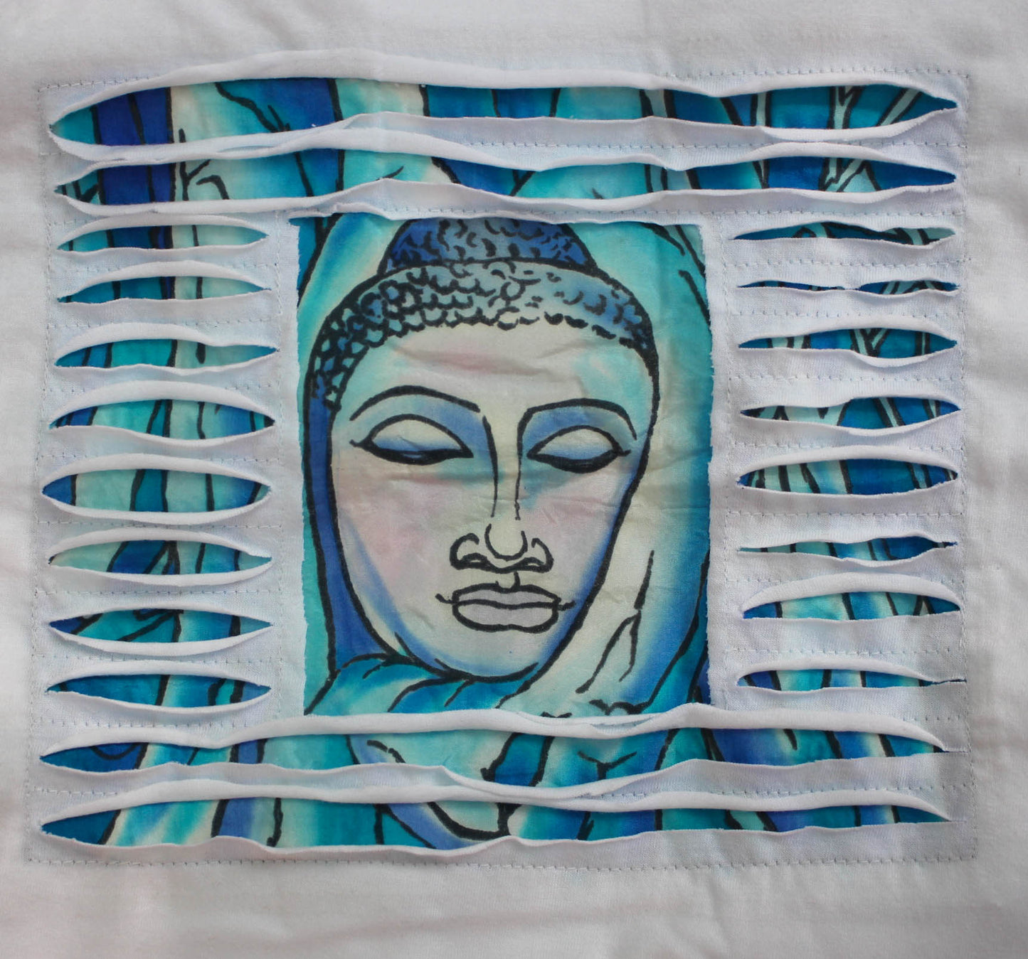 Get a taste of Nirvana with this insert hand painted Buddha face on pure silk.