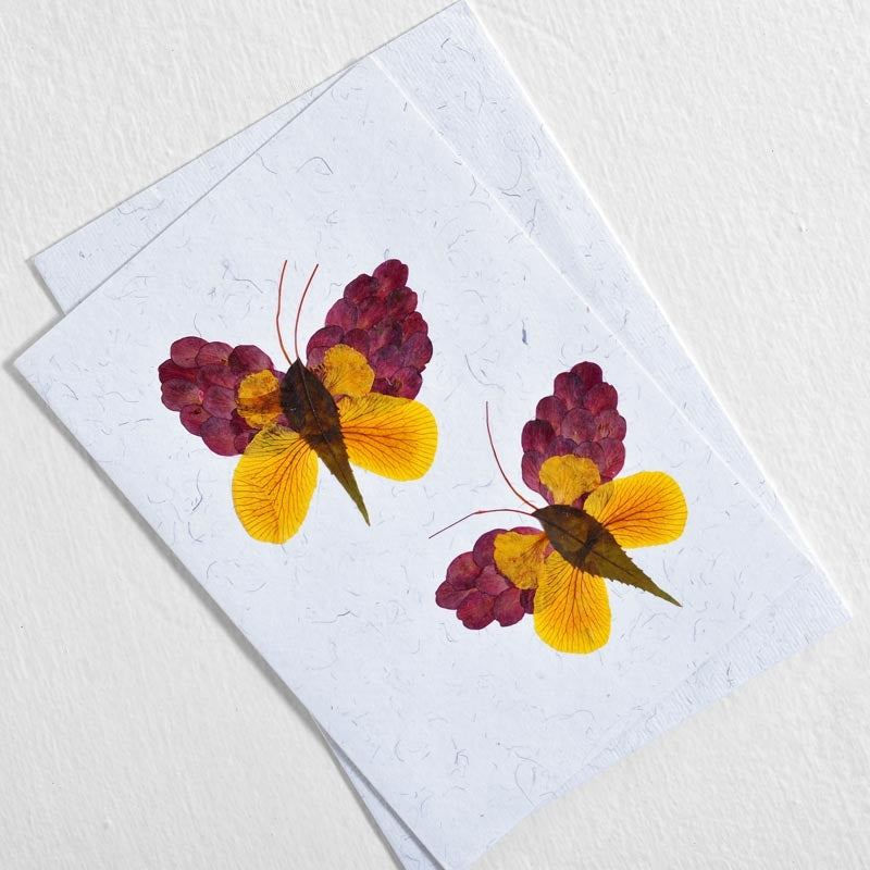 Surprise your loved ones with these sweet and floral postcards inspired by the Butterfly theme. All the postcards are handmade with delicately placed flowers to form the four lovely designs.