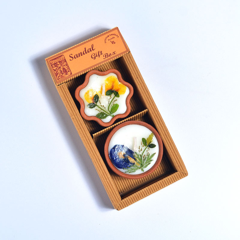 Content: candle gift box | 2 pot candles, with organic essential oil fragrance and hand-decorated with real dried flowers.