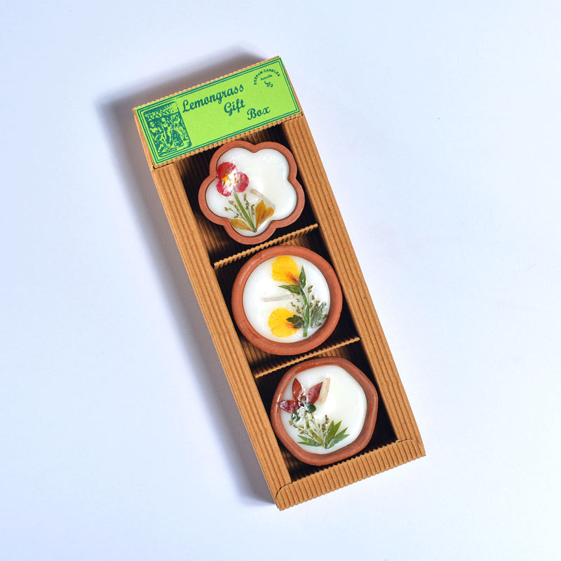 Content: candle gift box | 3 pot candles, with organic essential oil fragrance and hand-decorated with real dried flowers.