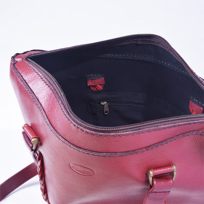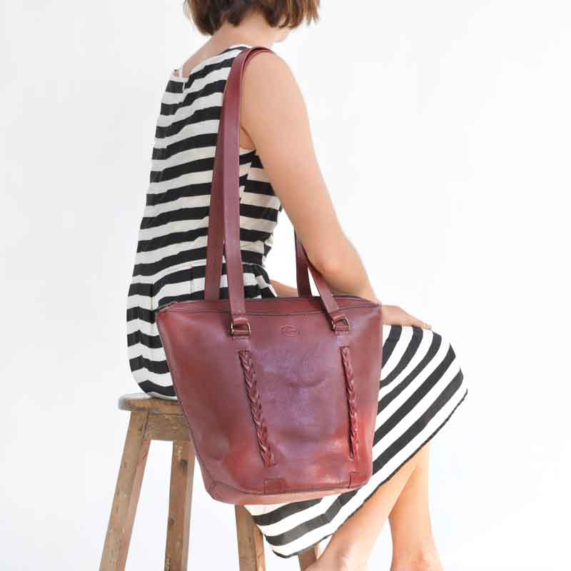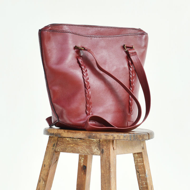 A slim and slender leather bag, with braided lines design, both in the front and back. With its depth, it can carry even long things like bottles, files & papers too.
