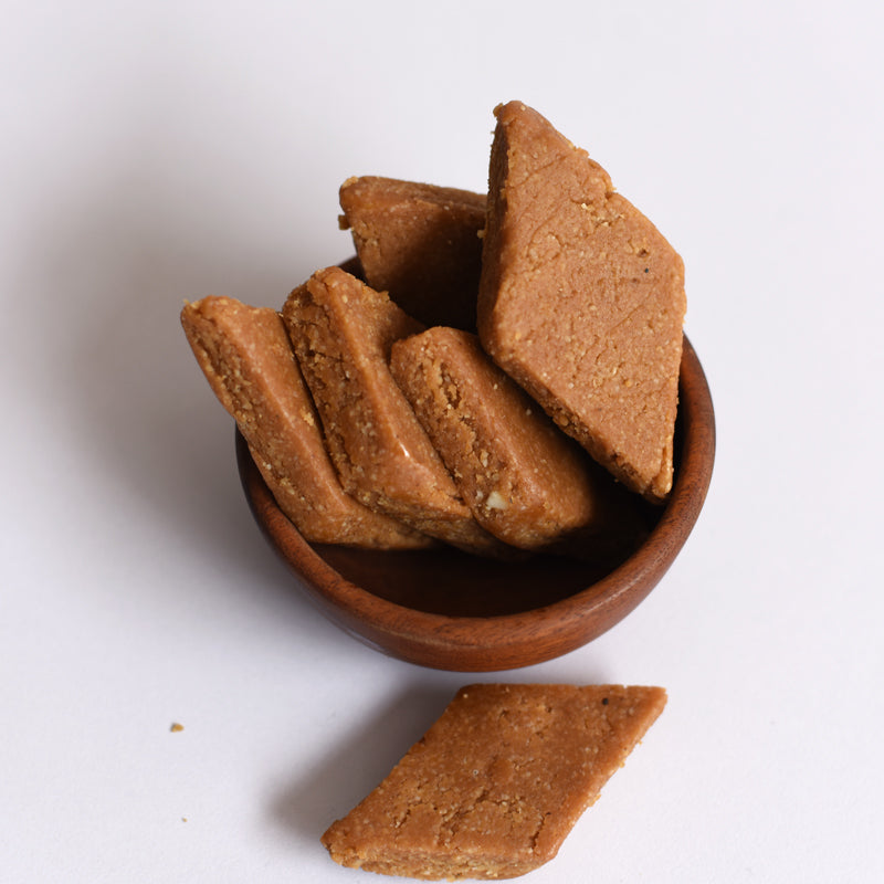 For over two decades, we have been cultivating our own special strain of sugarcane and processing it using traditional methods. Free from additives, preservatives, or chemicals, our jaggery serves as a healthy alternative to refined sugar. This Cashew Jaggery Sweet is not only a tasty treat but also a nutritious, healthy option for those seeking a natural indulgence.