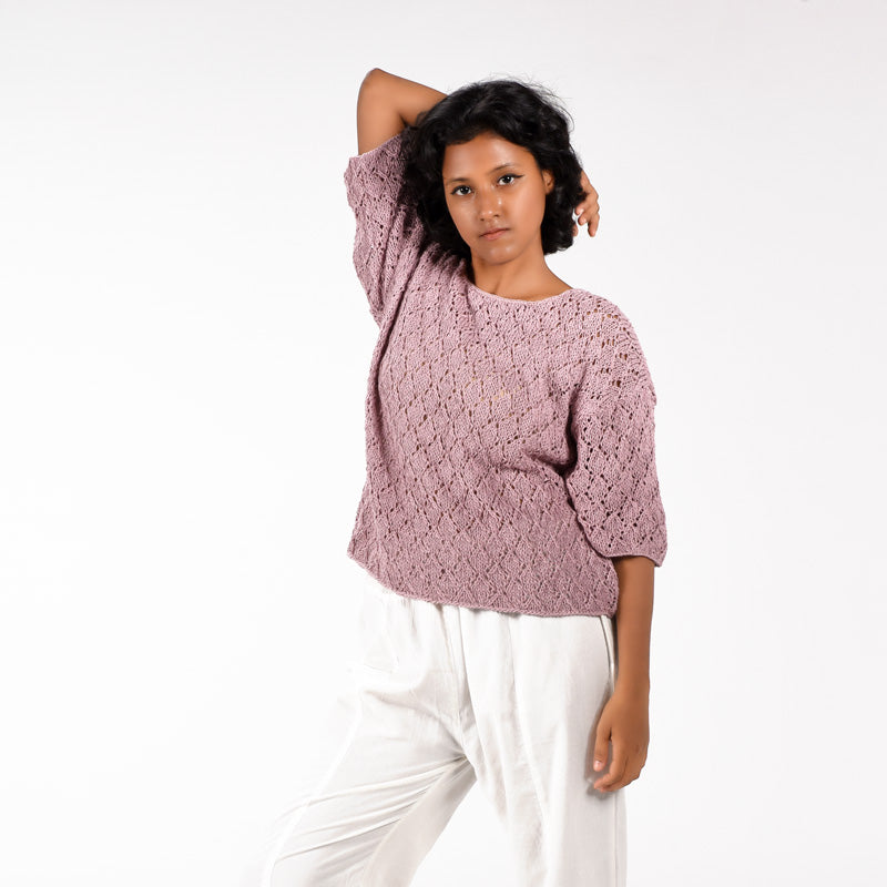 A beautiful Pointelle knit top made from 100% pure cotton. Featuring a round neck with three quarter length sleeves, the pattern is set to add a touch of grace and enhance your collection!