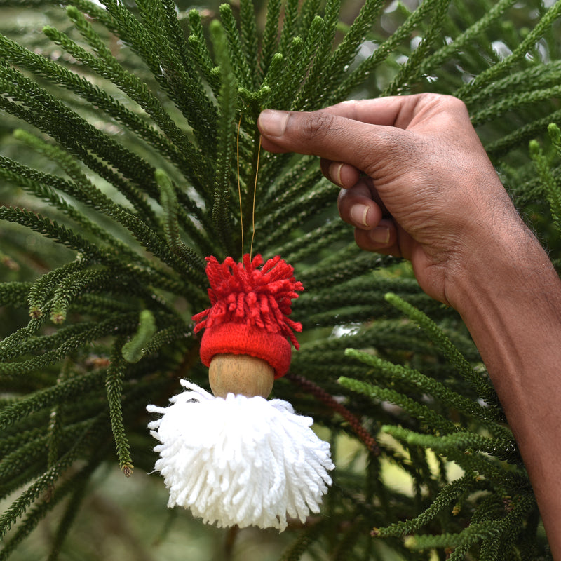 This handcrafted Christmas Doll is made from Acacia wood and cotton yarn. It comes with a convenient looped string so it can be fixed on your Christmas tree or hung as decoration anywhere around your home to bring in the joyful spirit of the festive season.