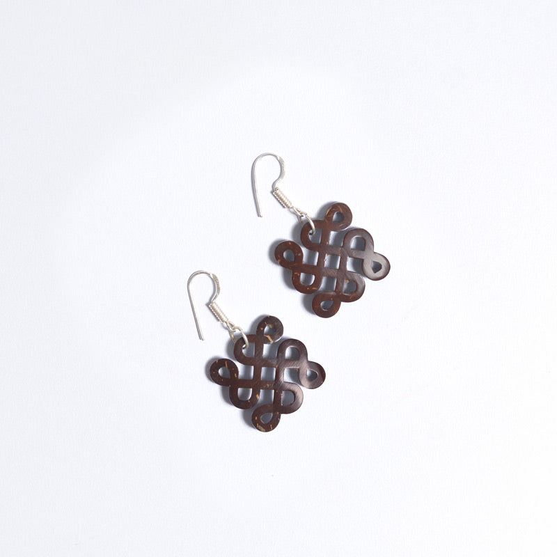 Coconut Shell Earrings / Kolam Design: EGER16. An absolutely beautiful hand-crafted earring made up of coconut shell. Coconut shell is lightweight and soft, and its natural properties add warm tones of light and dark brown to jewellery. The post fits a standard-size piercing and is a great alternative for people who are sensitive to metallic earrings. This can be a great gift for your loved ones. Well detailed and very beautiful. This earring can be used for going to dinners, weddings, and other formal occasions. It is playful and brings out life and joy.