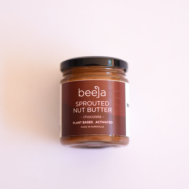 - Sprouted Nut Butter - Chocolate- Handcrafted sprouted nut butter made from walnuts, almonds, cashews, cacao, and jaggery—slow-processed for 48 hours to achieve rich flavor and natural goodness (190 g).