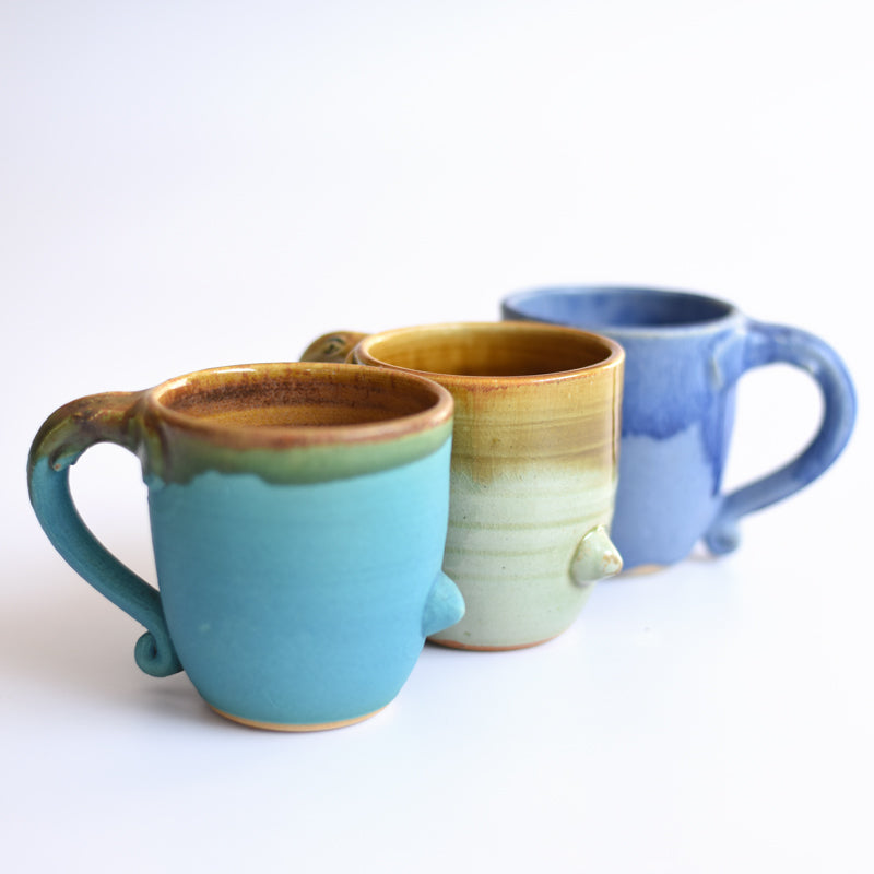 This lovely ceramic elephant mug by Mandala Pottery is our most popular piece. It is an eye-catcher and a pretty companion for your coffee and tea. It is both a maker and user favorite.
