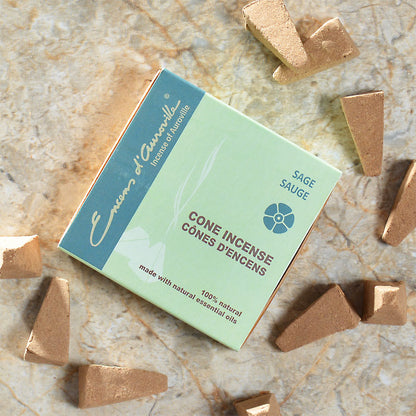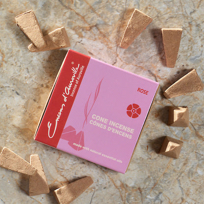 Cone incense is one of the most universal and purest methods of delivering the therapeutic benefits of fine incense. It also has the added advantage of being very compact and neat. One small cone delivers an amazing amount of pure aromatics but leaves behind just the smallest dollop of ash.