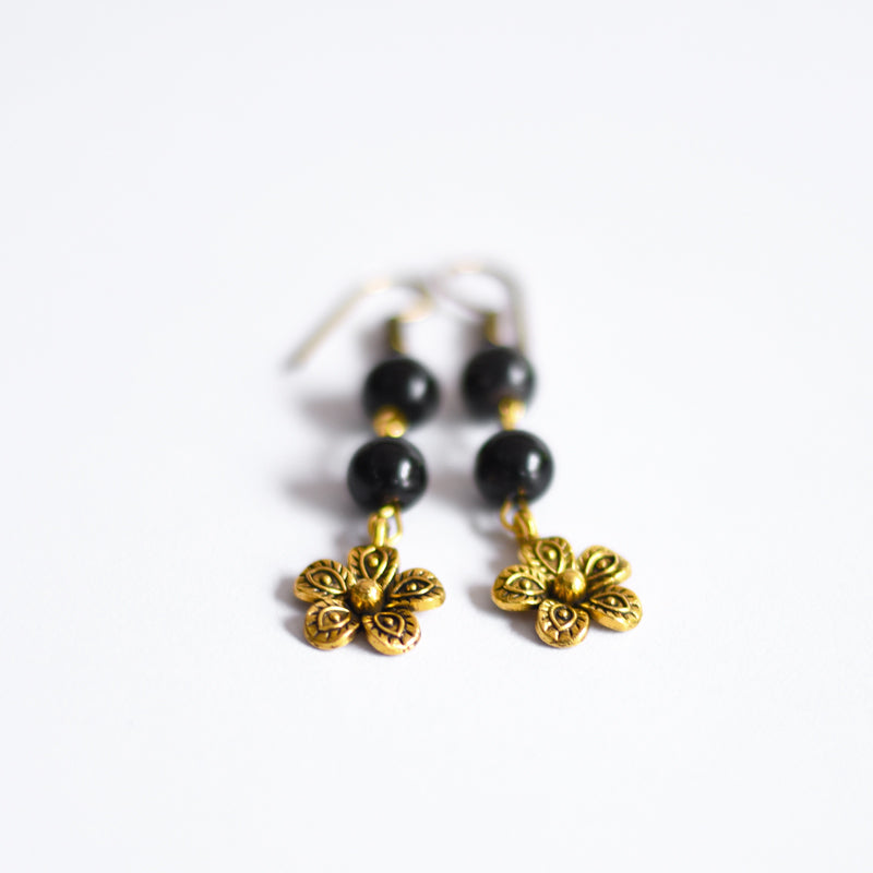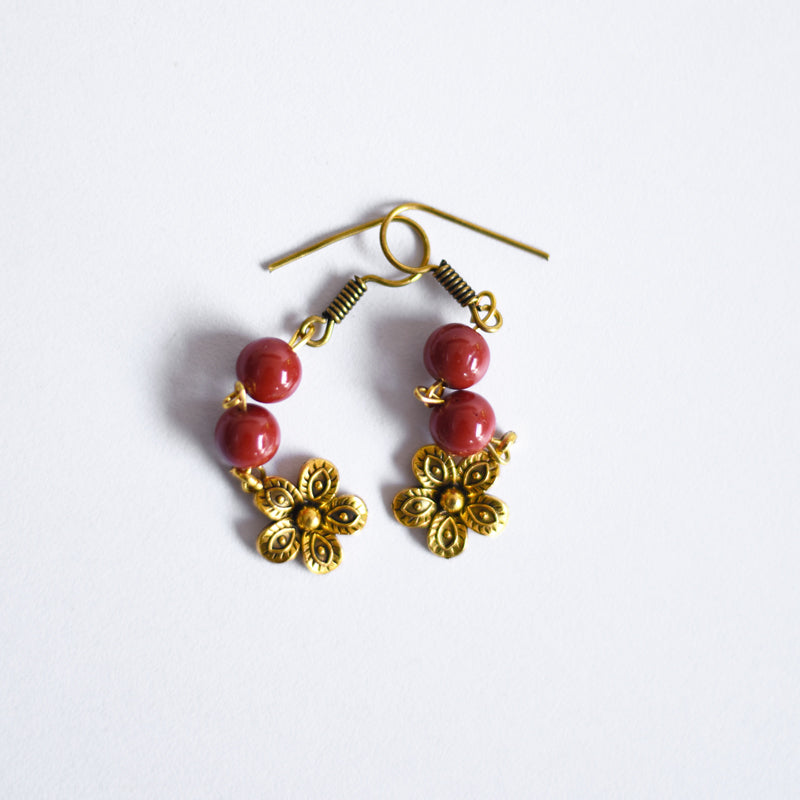 Embrace this floral drop earring hand made with vibrant coloured beads and a floral charm. Adding a pop of colour these floral drop earrings are a must have for boho-chic lovers
