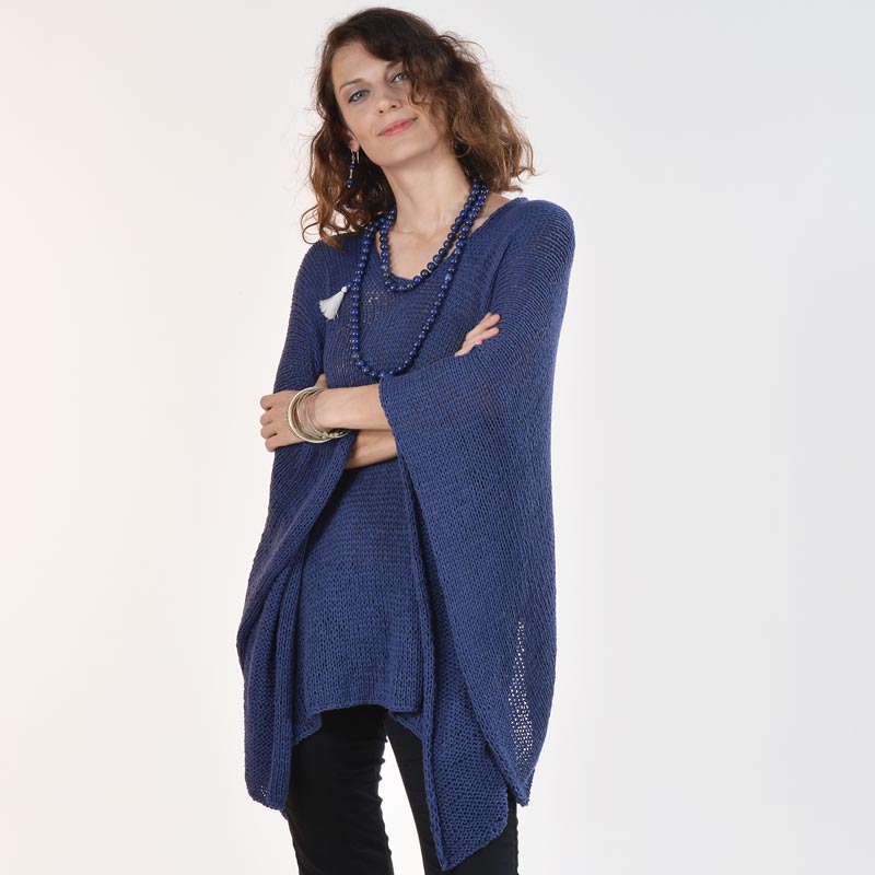 This over-sized poncho is the ultimate in easy dressing – simply throw it on for a smart, carefree look. The soft hand knit cotton makes it perfectly cozy. Layer over pretty much anything for shopping trips and coffee dates.