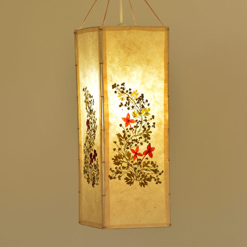 The blooms of a tropical garden in all their vibrant profusion of color, shape, and size are artistically arranged to make this contemporary lampshade to set a perfect mood and to suit every occasion and to bring the uplifting and soothing effects of nature into one's life.