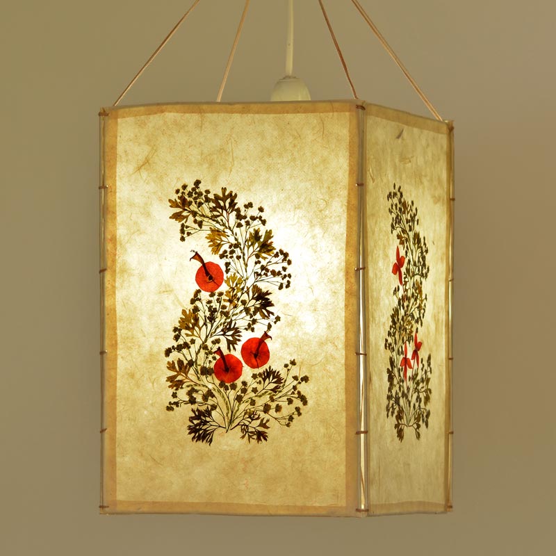 Materials used: Hand made paper, paint, wood, powder-coated iron frame, pressed leaves and flowers.