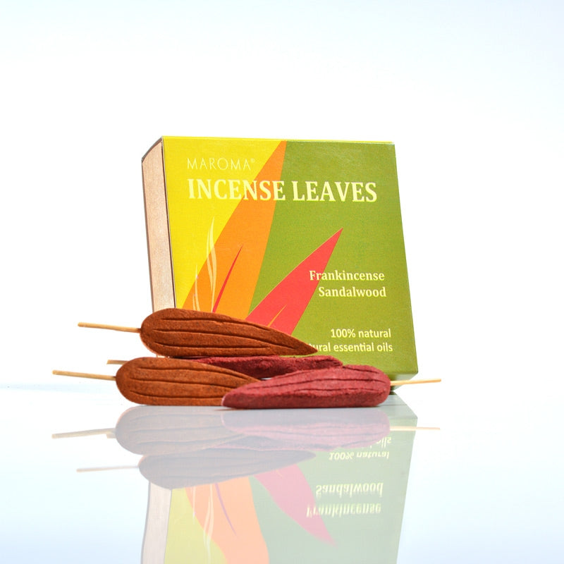 These leaves are hand pressed from a paste of sandalwood powder infused with aromatic blended with natural essential oils. The lingering fragrance will elevate and refresh a room for hours.