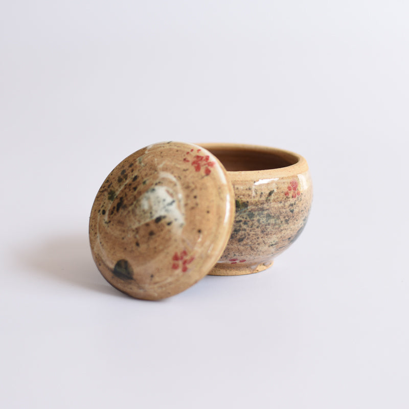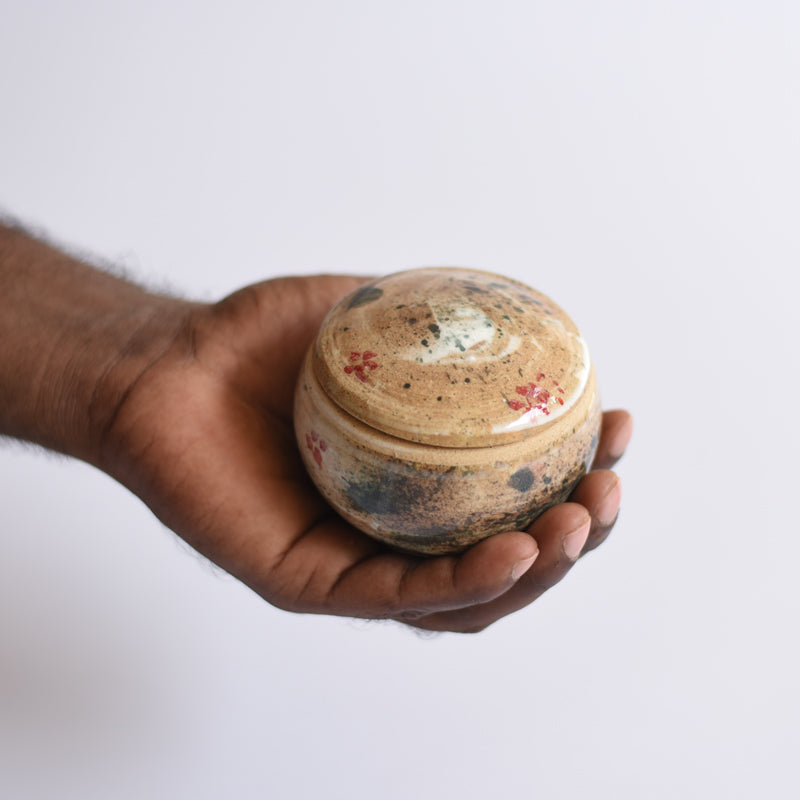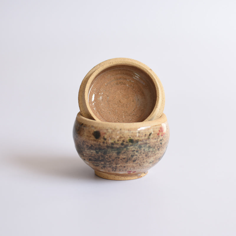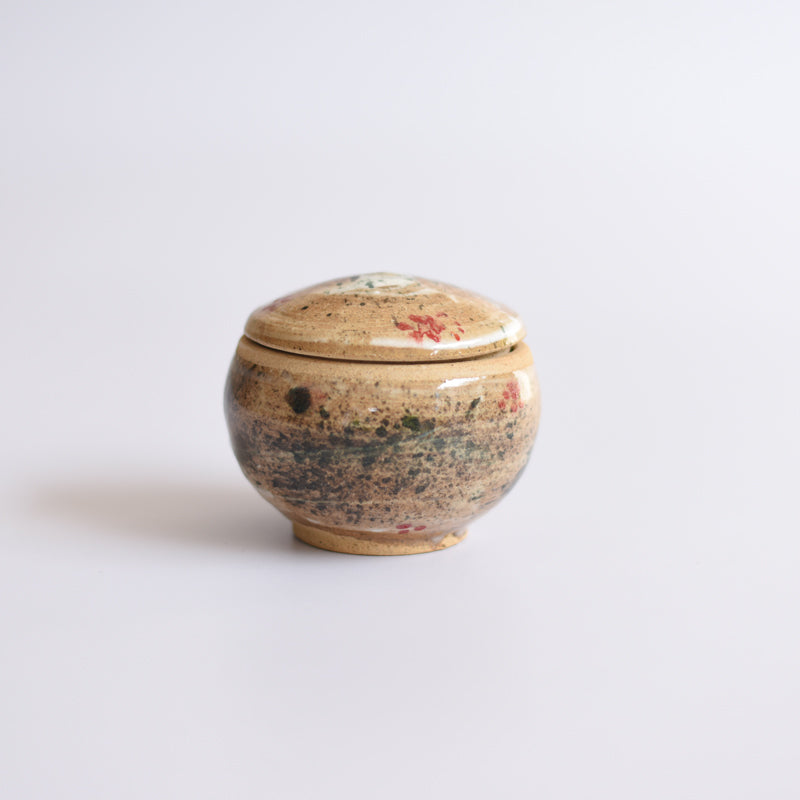 Smal jars in splashes of colours. Bringing suprise and joy in daily life. Made on the wheel, this jar can be used in the ktichen or on the dining table. It can also be used to store cotton or jewellery
