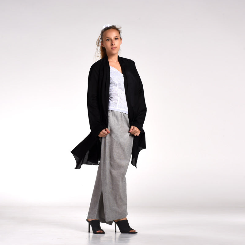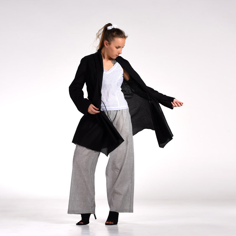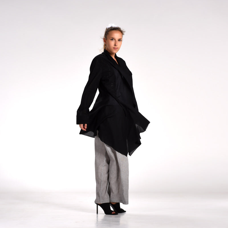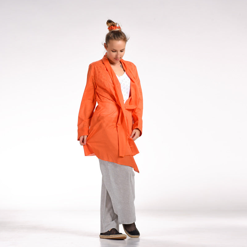 A well-cut summer jacket with delicate feminine details is a perfect layering item. Knee-length Shawl neckline Broderie Anglaise at front and back bodies Front closure with rope piping.