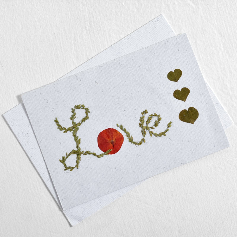 Materials used: The paper is hand-made from recycled cotton, enhanced with natural fibres like straw, gunny, or wool. Flowers are organically grown, then handpicked and pressed each day
