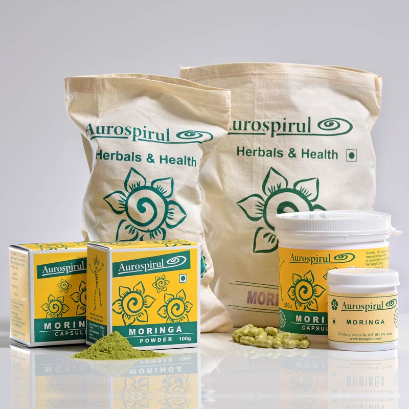All Aurospirul products are 100% natural uses no pesticides or chemical fertilizers that could cause damage to the environment and to you. Aurospirul Moringa is organically grown and shade-dried in Auroville.