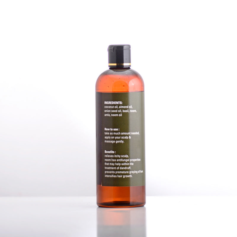 Ingredients: Neem leaf, Onion seed oil, Basil, Amla, Coconut oil, and Almond oil.