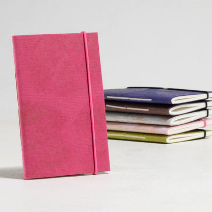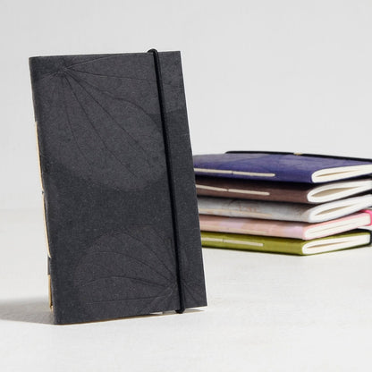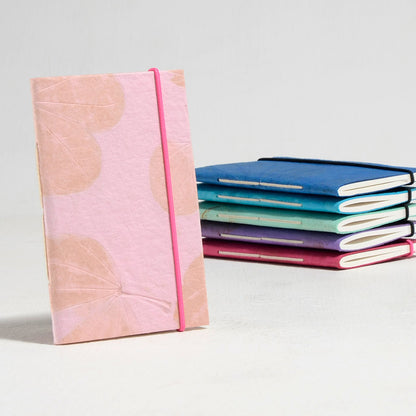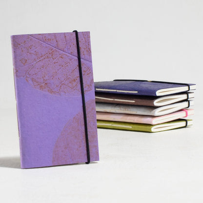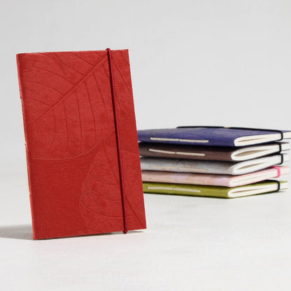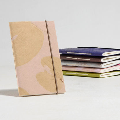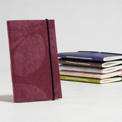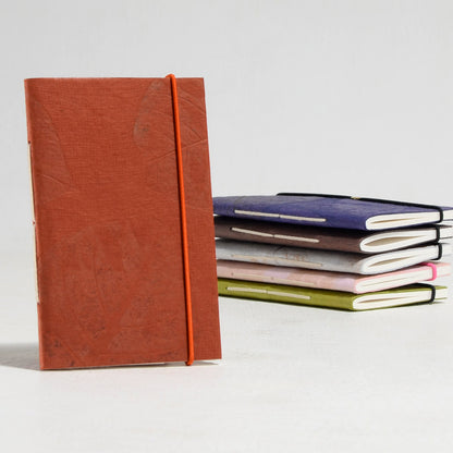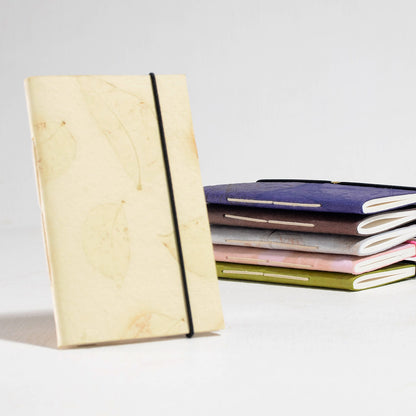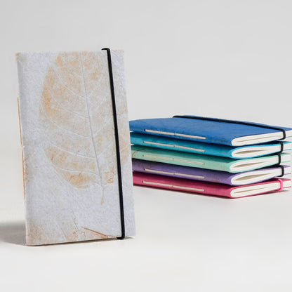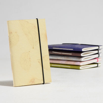 The Inprint collection continues with these newly added notebooks. The designs are inspired by the imprints of leaves of a wide variety of flora that is found in Auroville. They are made with recycled papers on which colored leaves have left their imprints. Let your thoughts and ideas merge with the expressions of these beautiful notebooks to create art in the form of the written word.