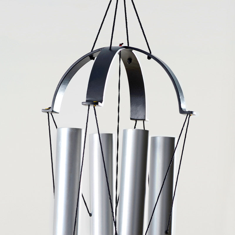 In the most simple arrangement of the four 'pillars' of the musical octave, the primal interval proportions of 2/1, 3/2 and 4/3 are brought together in a beautiful harmonizing sound-sculpture. A special feature of this chime is the use of durable materials so that it can be exposed to outside weather conditions. All the four single tones fuse into a unifying whole, inviting the listener into a world of universal sound.