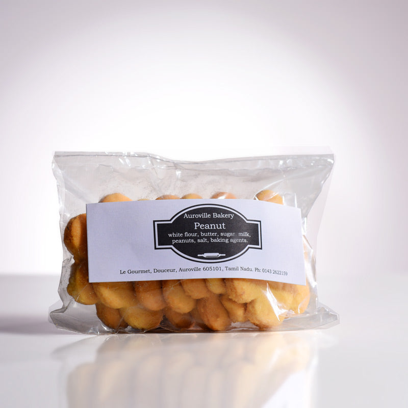 Ingredients: White flour, Butter, Sugar, Milk, Peanuts, Salt, and Baking agents.