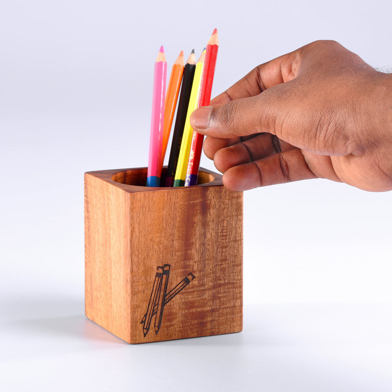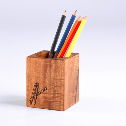Keep your desk tidy and organised with this Pen and Pencil holder. Crafted from a single piece of natural Acacia wood, plain or engraved with a simple drawing, this item adds a beautiful touch to your workspace or crafts table.