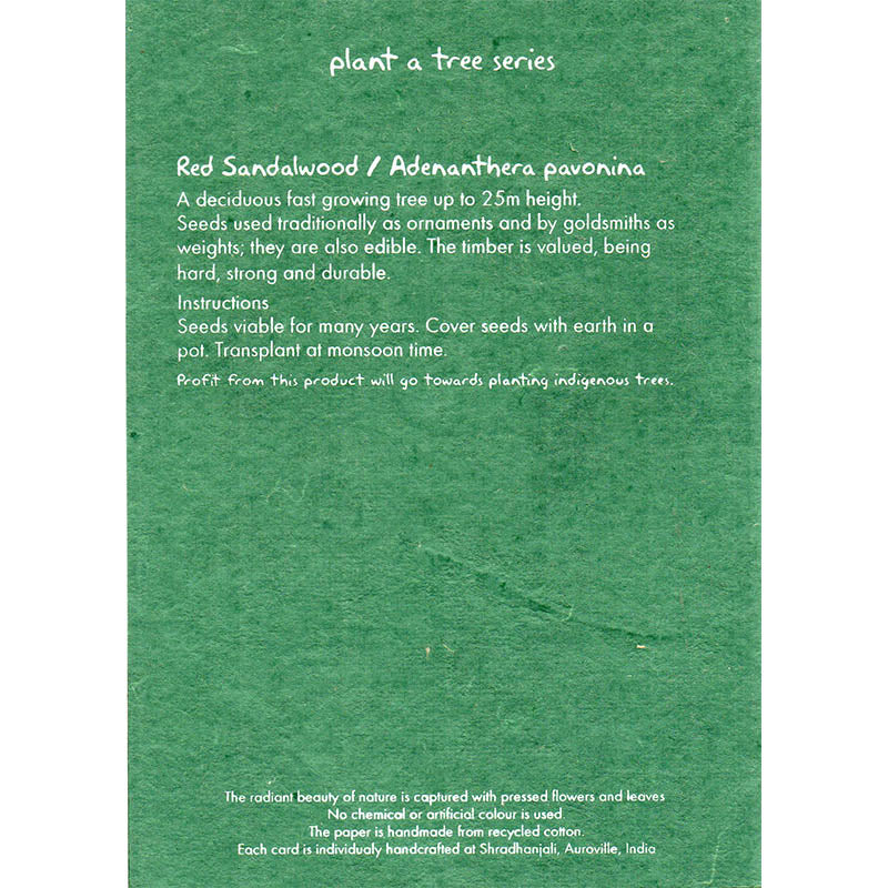 In the first of this range of educational cards, Shradhanjali brings you the viable seed of Red Sandalwood. Lend an active hand in greening the planet and conserving its amazing variety by planting a tree.