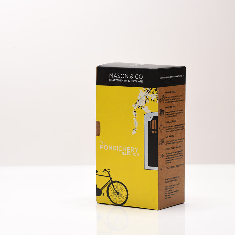 The Pondy Yellow sleeve features the signature yellow wall & holds six of our best-selling dark chocolate flavours in 60g: