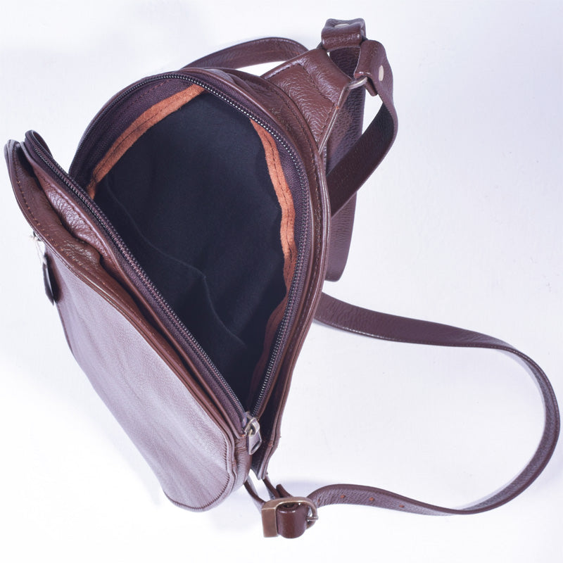 Rachel is a mini leather backpack with a lovely oval shape. In spite of its compact dimensions, the handy front zipped pocket and two open pockets inside, making it very useful for the many essentials and handy stuff to fit in.
