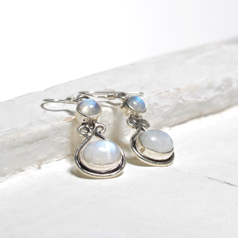 These beautiful dangle earrings are handcrafted by the Auroville Unit Aurosunshine. The (925 sterling) silver is melted in Auroville and the stones are carefully selected with an eye for detail, naturalness, and purity. The stone is said to symbolize tenderness and femininity. It is looked upon as being a gateway to intense calm feelings and flexibility.
